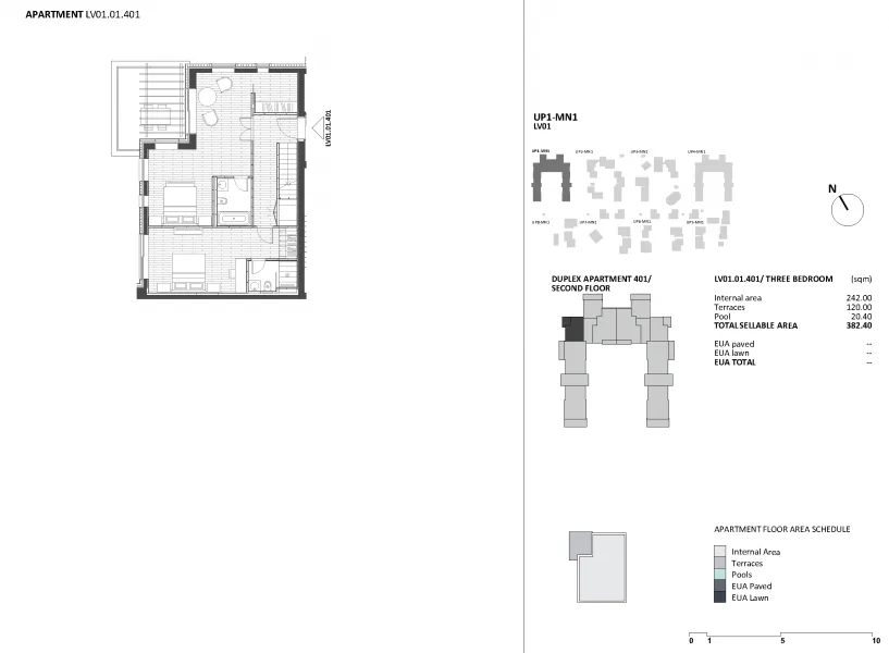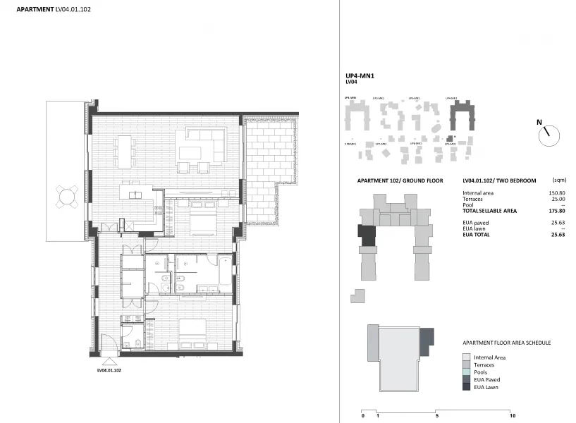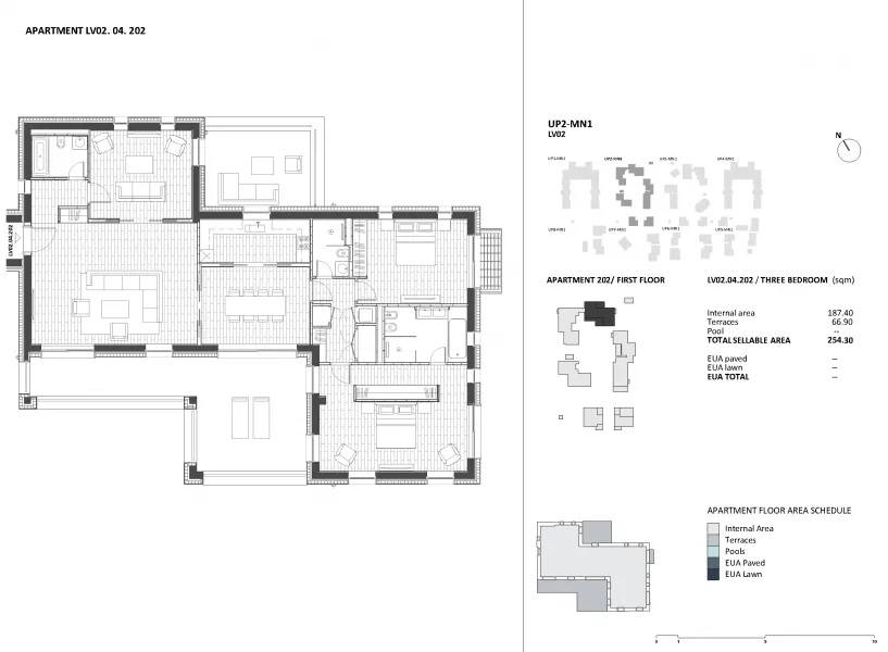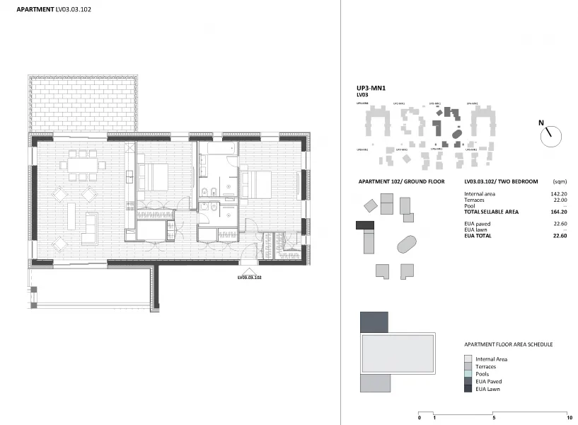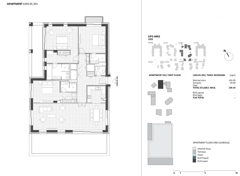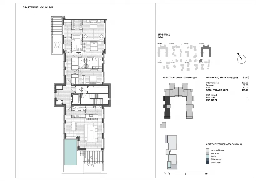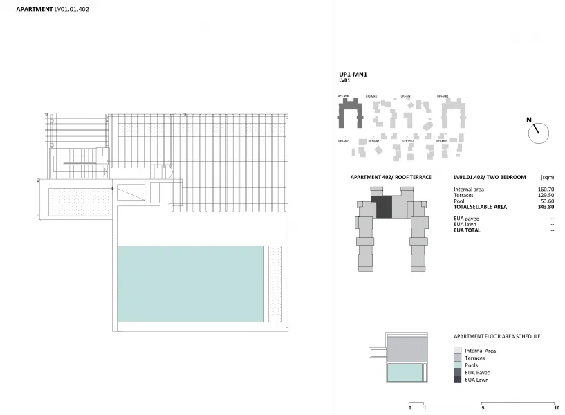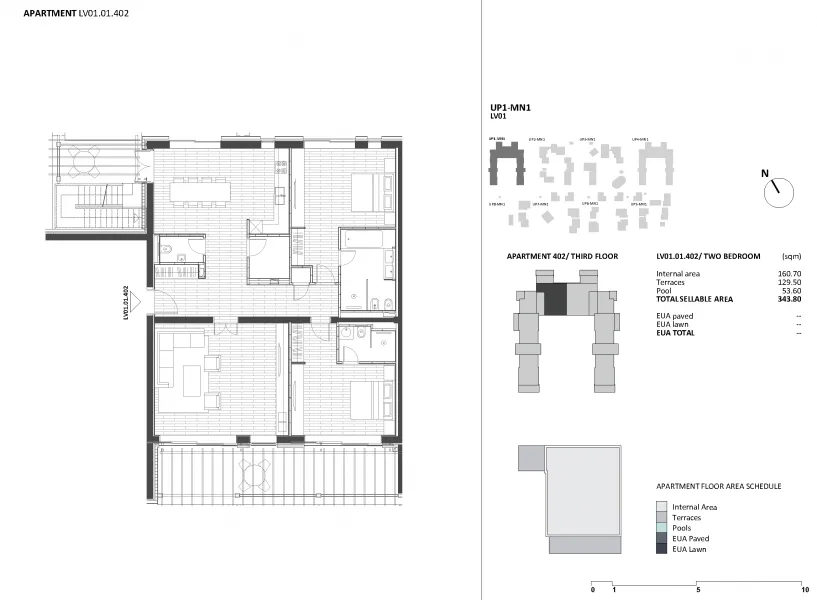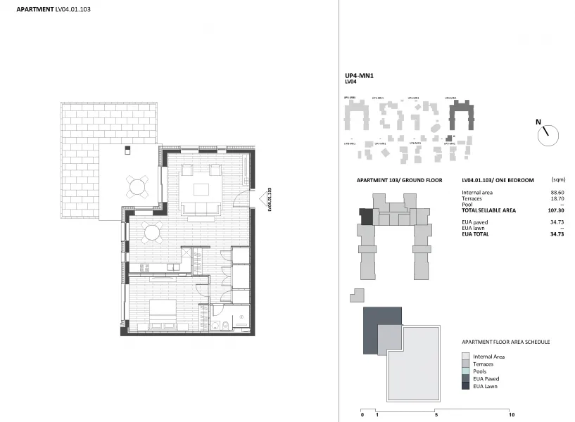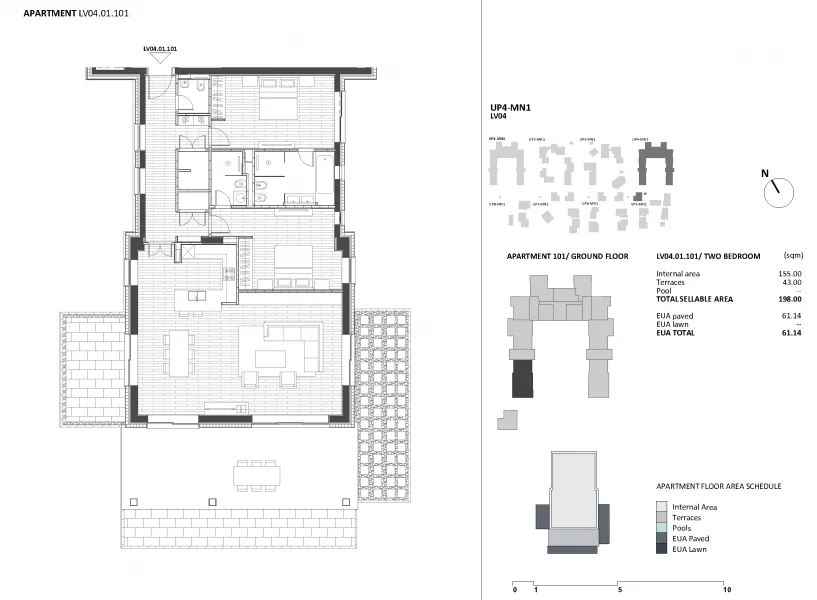 Жилые помещения варьируются от апартаментов с одной спальней до апартаментов с четырьмя спальнями, все они включают в себя обширное внутреннее и внешнее пространство для развлечений, общения или просто отдыха